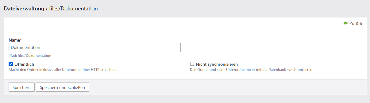 Jetzt geben Sie den Namen des neuen Ordners ein, setzen den Haken bei Öffentlich und Speichern. - Dateien hochladen